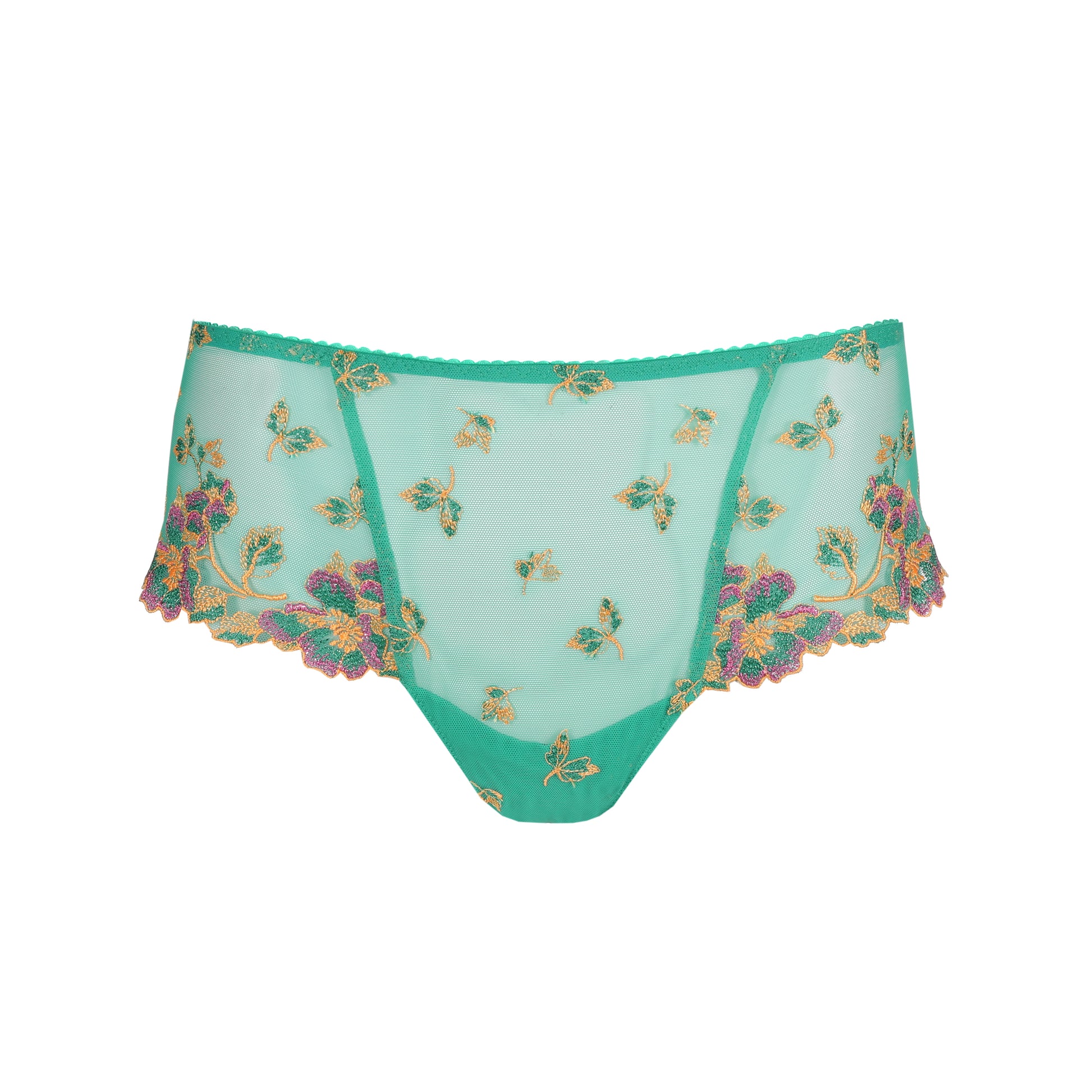 Tanga de lujo seductor en microfibra suave, con franjas bordados en las perneras. El corte de pierna alto y el bordado permiten lucir un look muy seductor.